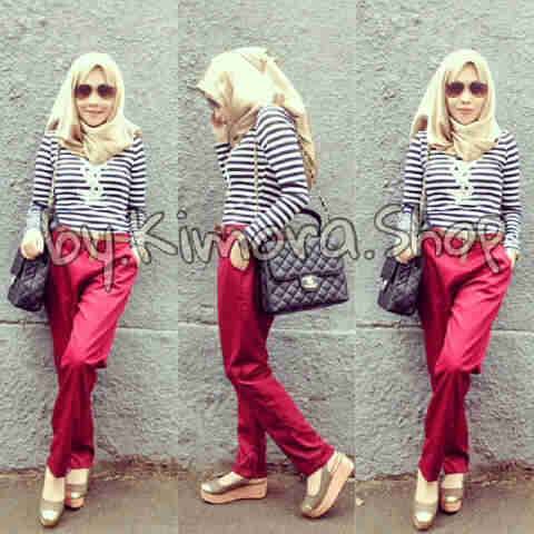 Stelan ysl @120 atasan+celana+pashmina fit l. Spandek kaos