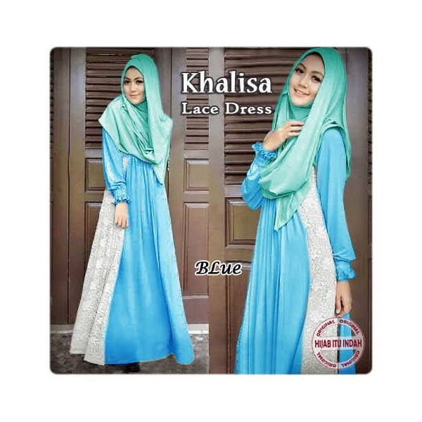 Khalisa Lace Dress Blue @145rb(MAXI Dres Tgn Pjg, Busui Sleting, Rok kombi Brukat + Pasminah Ceruti) Fit XL Jersey Korea