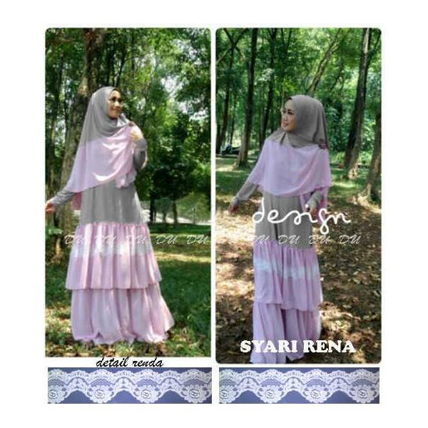 Syari Rena 92427-B Pinkbaby-abu @145rb,GAMIS susun hidup+BERGO TANPA PAD, spdx korea kombi sifon dan renda, resleting busui. fit XL