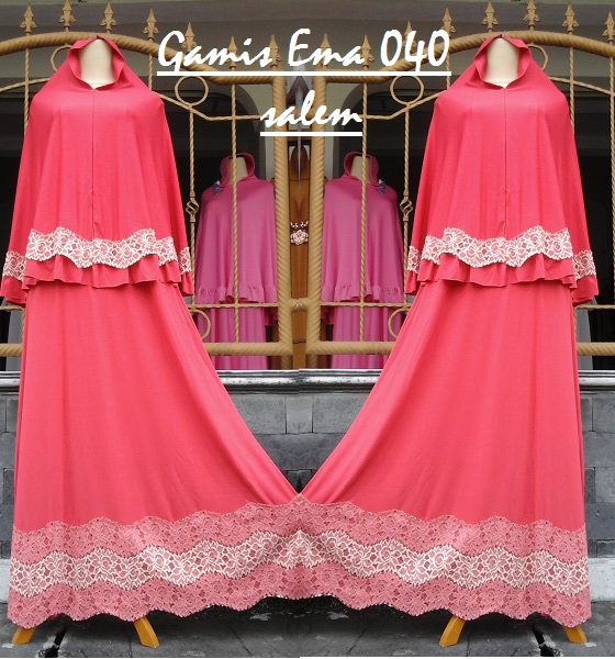 Gamis Ema 040 @195rb, gamis jersey super dengan renda mewah, resleting depan busui friendly, bergo no pad, panjang 135cm ld 90-110cm, barang dijamin bagus.