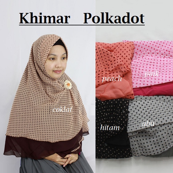 Detail: Khimar sifon syari dua warna polos dan motif polkadot, bisa dipakai bolak balik. Model khimar dengan pet dan belah depan.