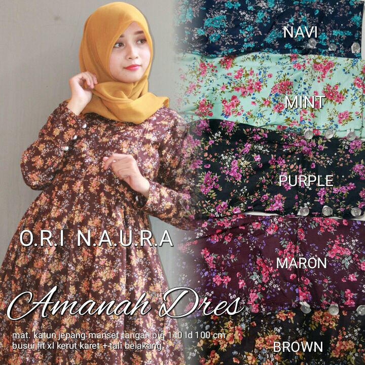 Ready stock amanah dress ori naura, gamis katun jepang, busuI fit xl.