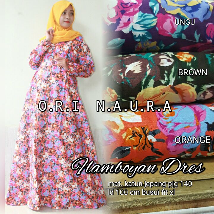 Ready stock flamboyan dress ori naura, gamis katun jepang, busuI fit xl.