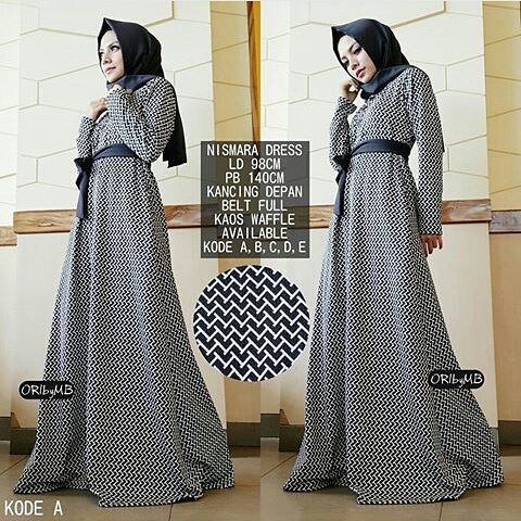 Ready stock nismara dress ori by mb, gamis waffle model umbrella, kancing depan.busui friendly, tali dipinggang, all size fit xl ld.100 p140.