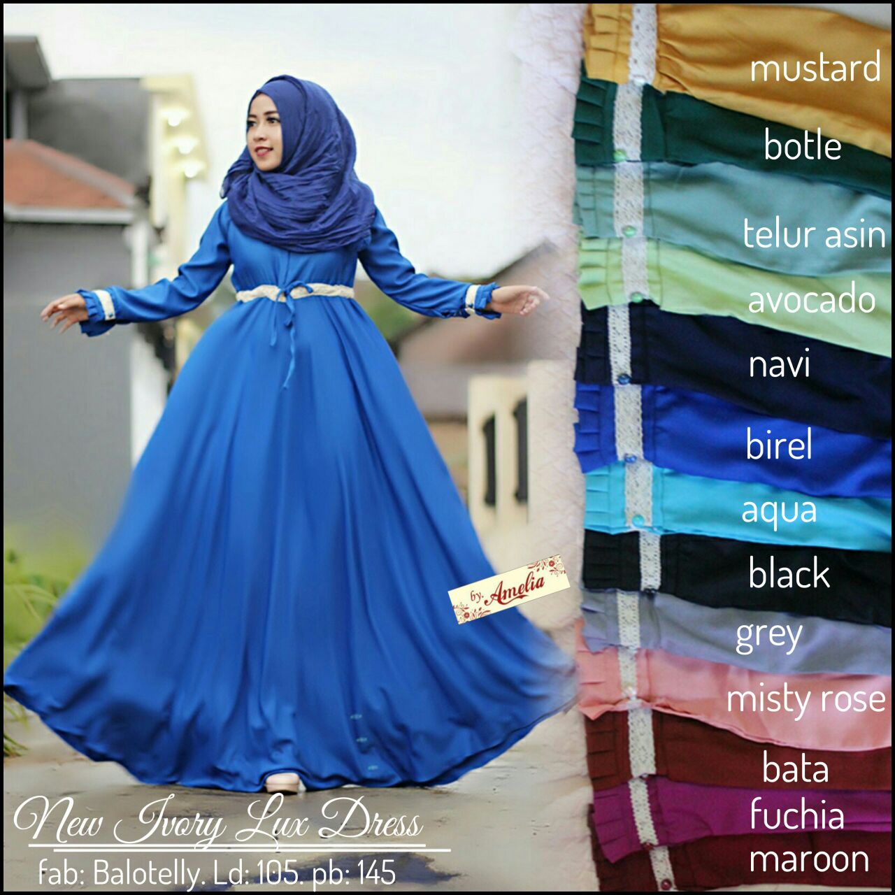 Ivory lux dress, bahan baloteli adem dan nyaman dipakai. Ld105 p145 , model umbrella busui friendly all size fit xl