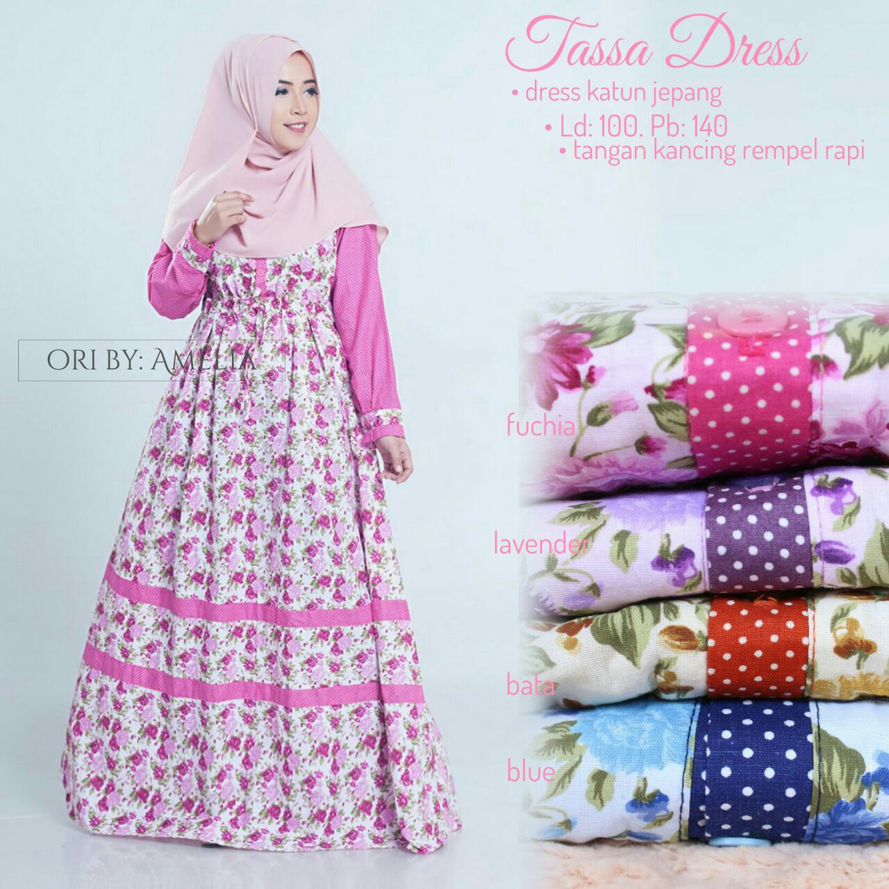 Gamis katun jepang busui tangan kancing ld 100 p140 all size fit xl