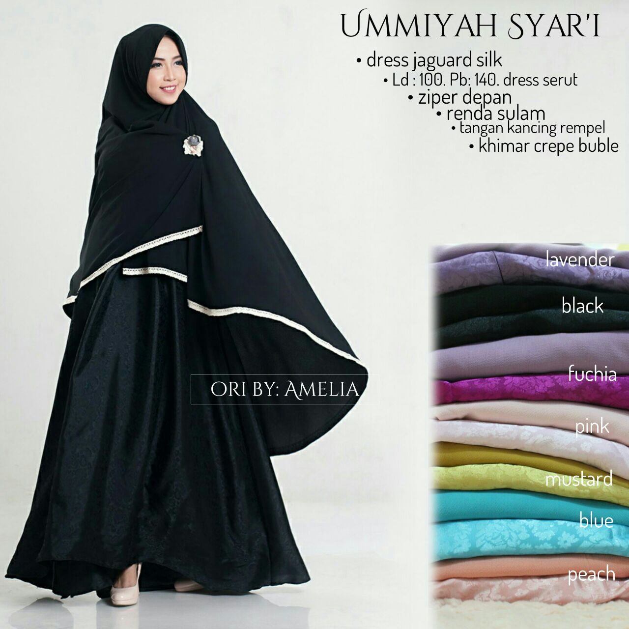 Gamis jaguar silk khimar buble crepe busui all size fit xl.