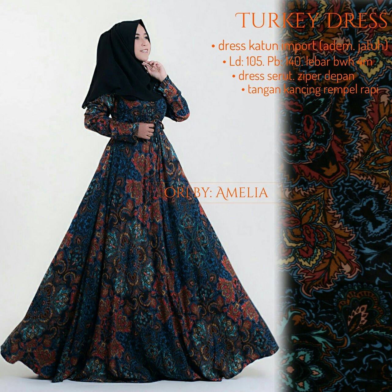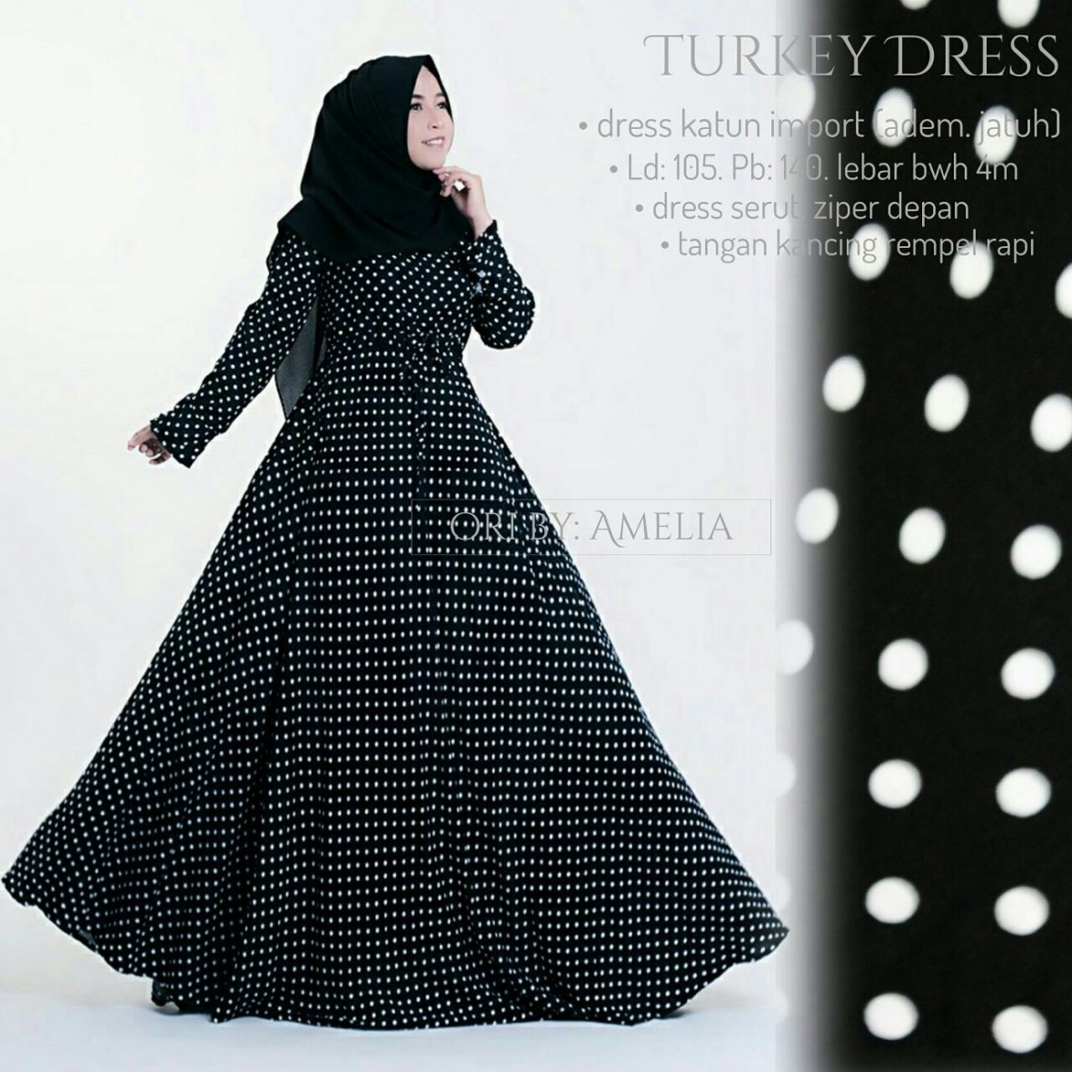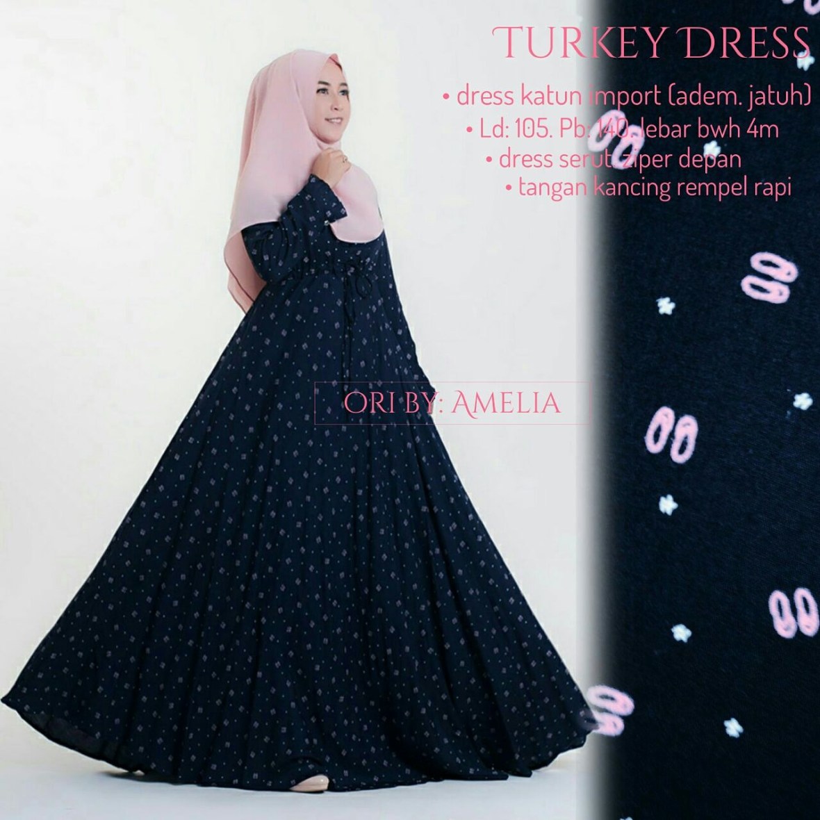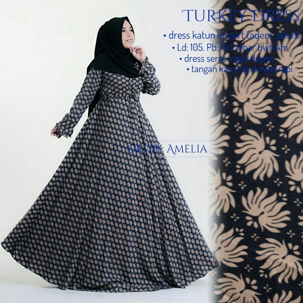 Bahan katun import adem dan lembut, ld105 p140 fit xl, ziper depan busui friendly . Lebar bawah 4m