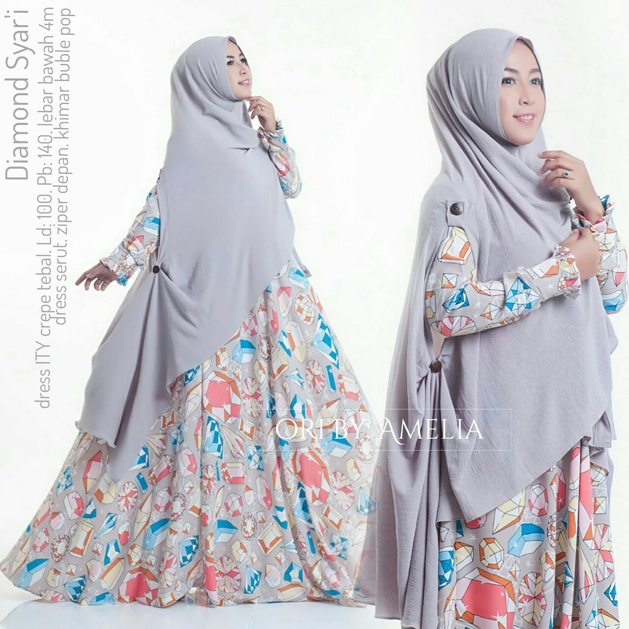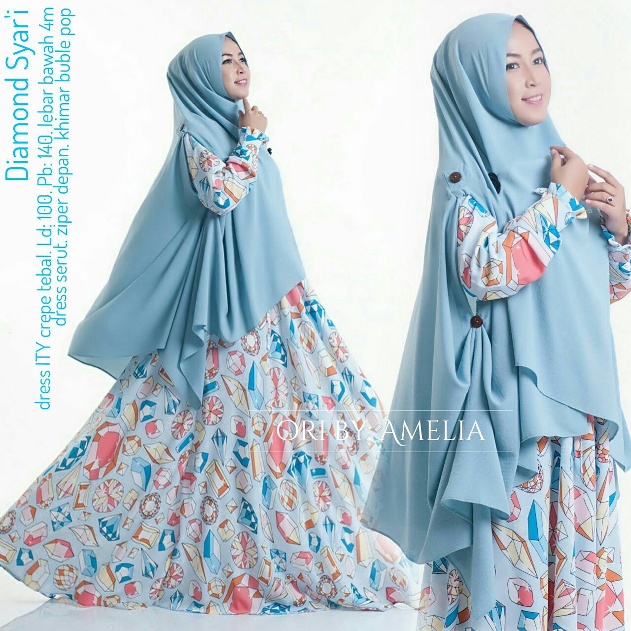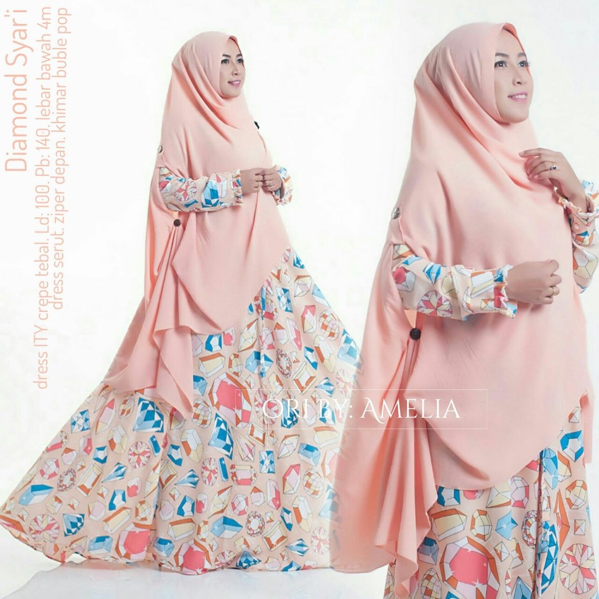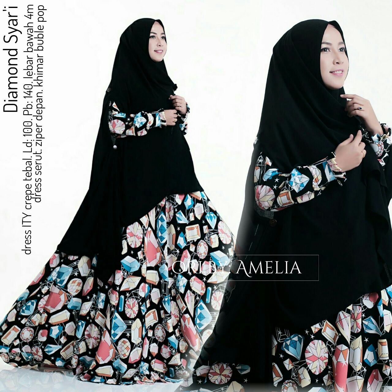 Diamond syari syaru, keluaran gamis terbaru oktober brand amelia, bahannya yg adem dan motif yg kekinian, khimar model terbaru ada yaitu khimar lengan dengan bahan buble pop yg lagi trend