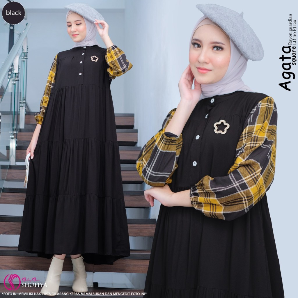_Midi yang ini langsung bikin jatuh cinta. Cutting susun ruffle memang membuat penampilan lebih jenjang dan bisa dikenakan untuk momen apa aja. Terbuat dari bahan rayon guardian yang adem dalam kombinasi polos dan square yang manis. Rok lebar mayung. Busui, kancing aktif. Krah sanghai jadi nutup sampai ke leher. Tersedia dalam 4 pilihan warna_